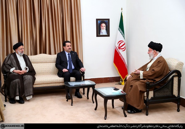 حضرت آیتالله خامنهای با تأکید بر اینکه «امنیت عراق، امنیت ایران است، همچنانکه امنیت ایران نیز در امنیت عراق تأثیرگذار است»، به مذاکرات امروز نخست وزیر عراق در تهران اشاره کردند و افزودند: در دورههای قبل هم مذاکرات و تفاهمهای خوبی انجام شد اما کمتر به مرحله عمل رسیدند بنابراین باید در مورد همه تفاهمها بهویژه در بخش همکاریهای اقتصادی و مبادلات کالا و ارتباطات ریلی به سمت عمل و اقدام پیش برویم.